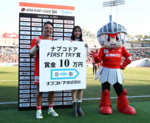 「ファースト・トライ」を獲得したアッシュ・ディクソン選手へ、『ナブコドア FIRST TRY賞』を贈呈していただきました!